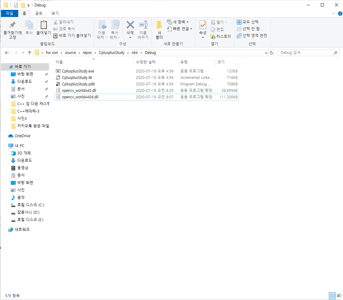 4번에 해당하는 경로에 가보시면 opencv_world440d.lib (디버그용), opencv_world440.lib (릴리즈용) 파일이 있는걸 확인하실 수 있습니다.