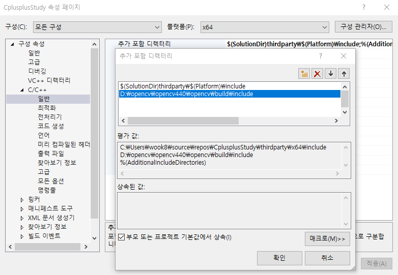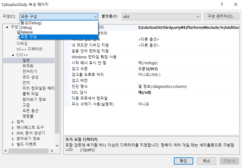 C/C++ -> 일반 -> 추가포함 디렉터리