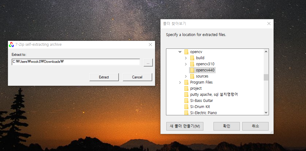 에서 openCV 4.4.0을 다운받고 압축해제 합니다. 저는 따로 opencv관리 폴더를 만들어 저장합니다.