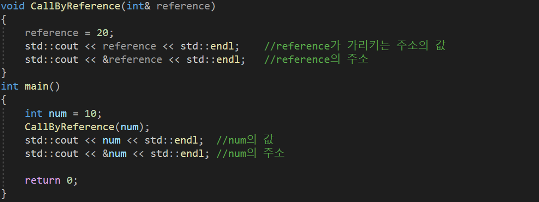 std::cout << reference << std::endl; //reference가 가리키는 주소의 값